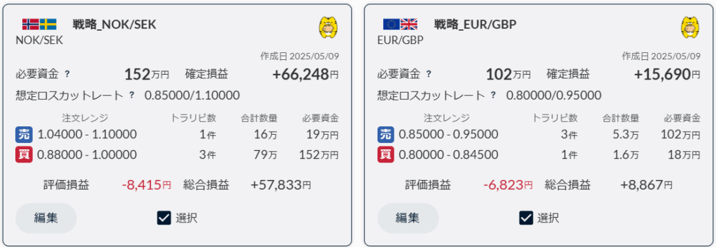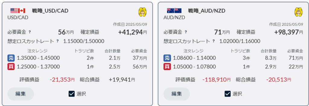 実際に使ってみると、その便利さはすぐに体感できます。たとえば、同じ通貨ペア内で複数のレンジを仕掛けている場合でも、戦略管理にグルーピングすれば「この戦略全体に必要な資金は◯◯万円」と明確に確認できます。