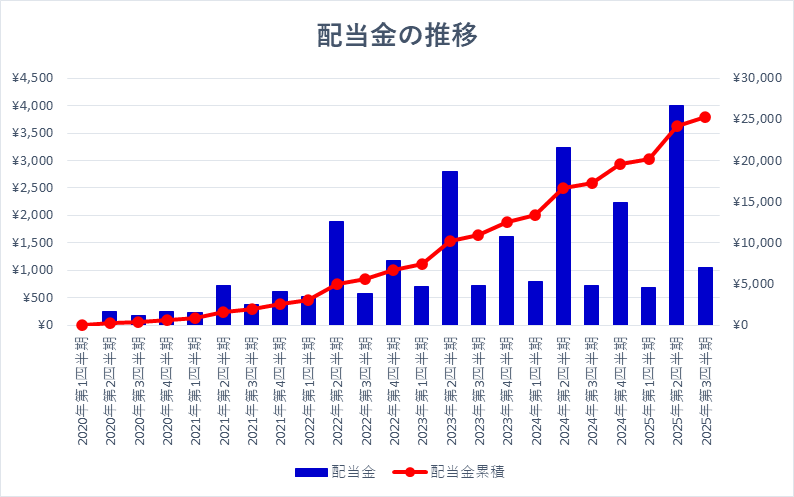 2021年は1920円の配当だったのが2024年には6,735円になりました。