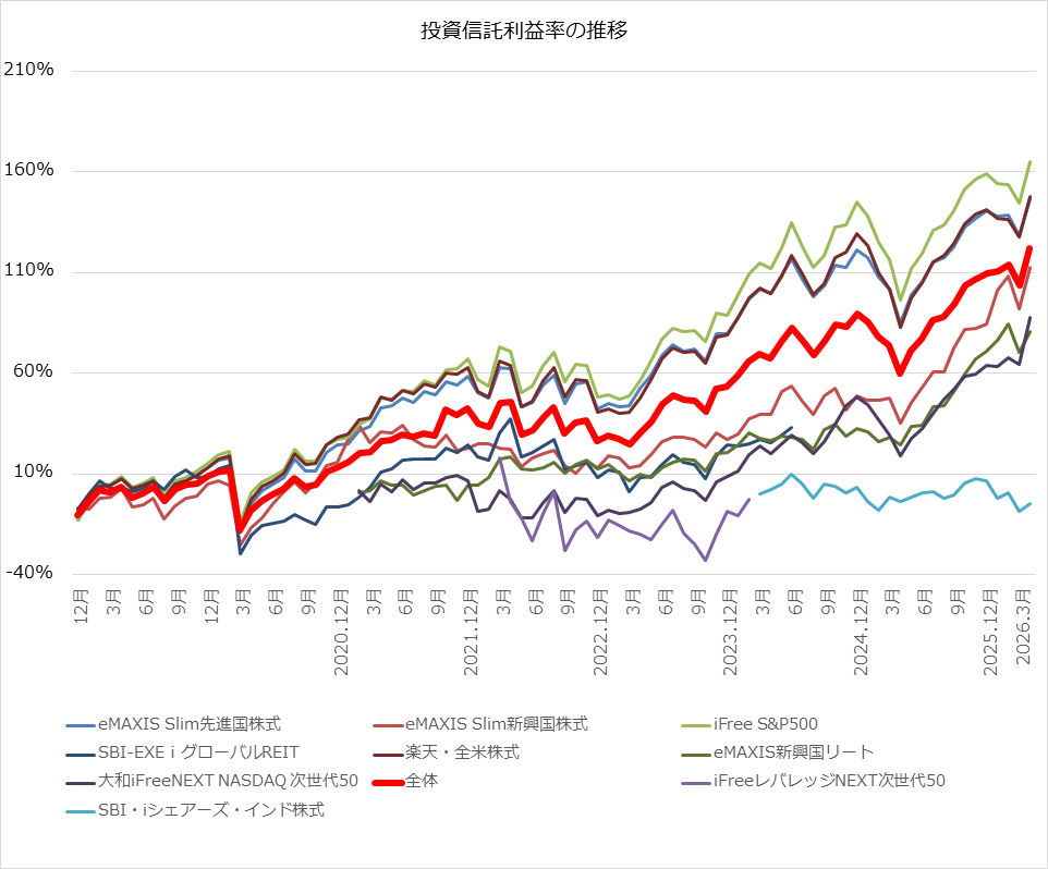 運用している各ファンドの2026.4月末時点の運用成績を表にまとめました。